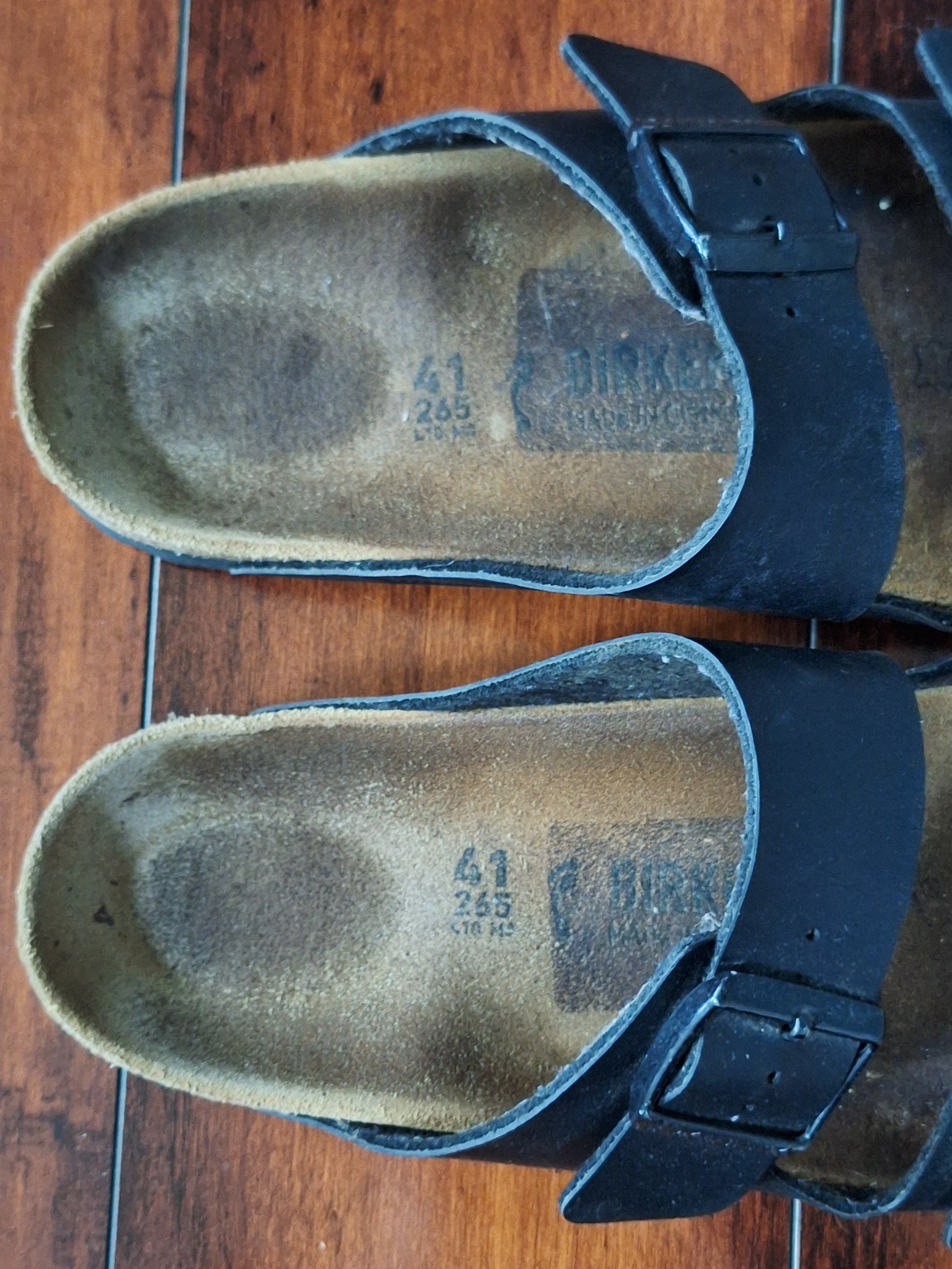 Birkenstock Arizona Sandals Black Leather, EU 41 W 10 M 8, Pre-loved. In good condition overall, please see photos for wear.