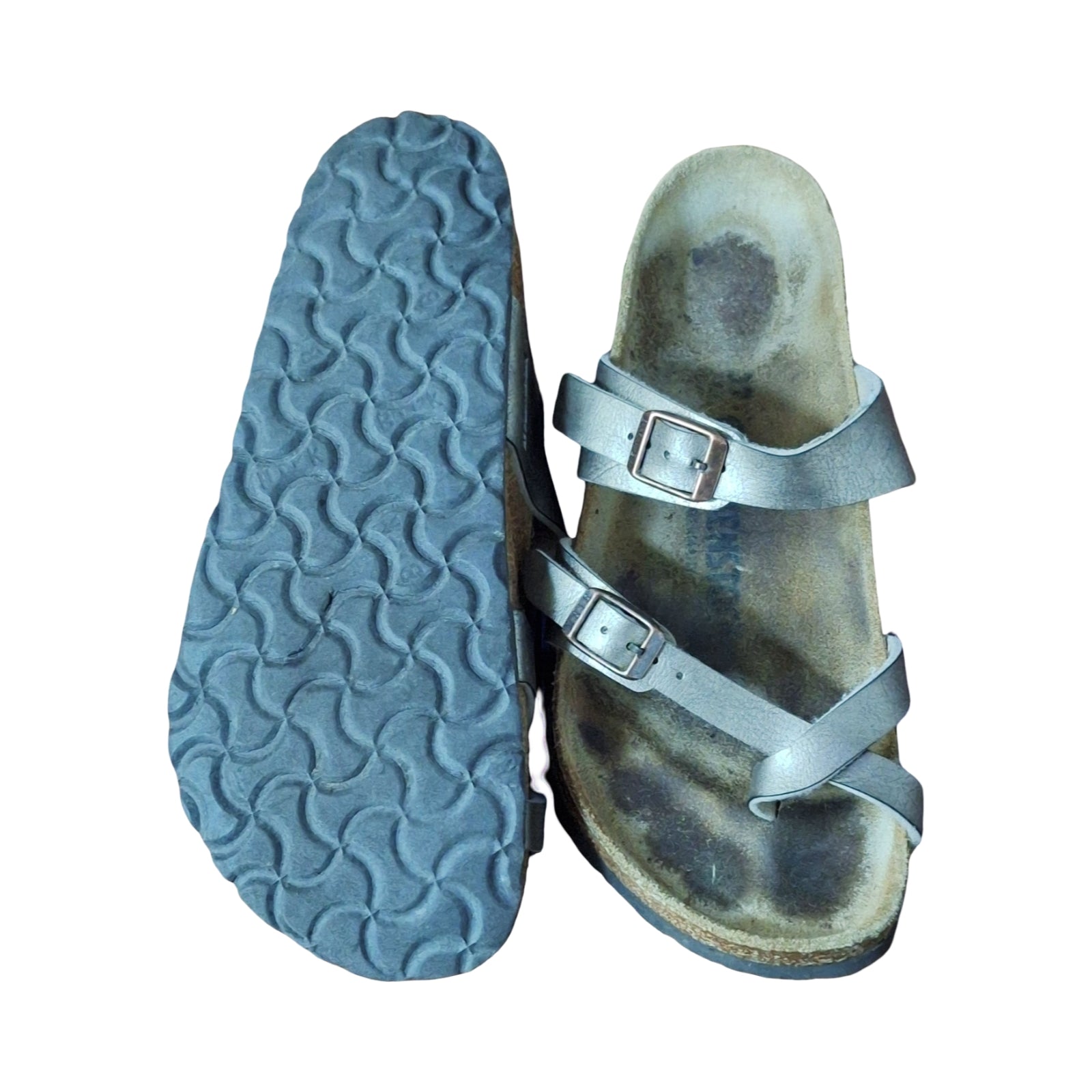 Birkenstock Mayari Leather Thong Sandals Bronze Metallic, Size 37 EU (US 6), pre-loved. In good condition overall, please see photos for wear.