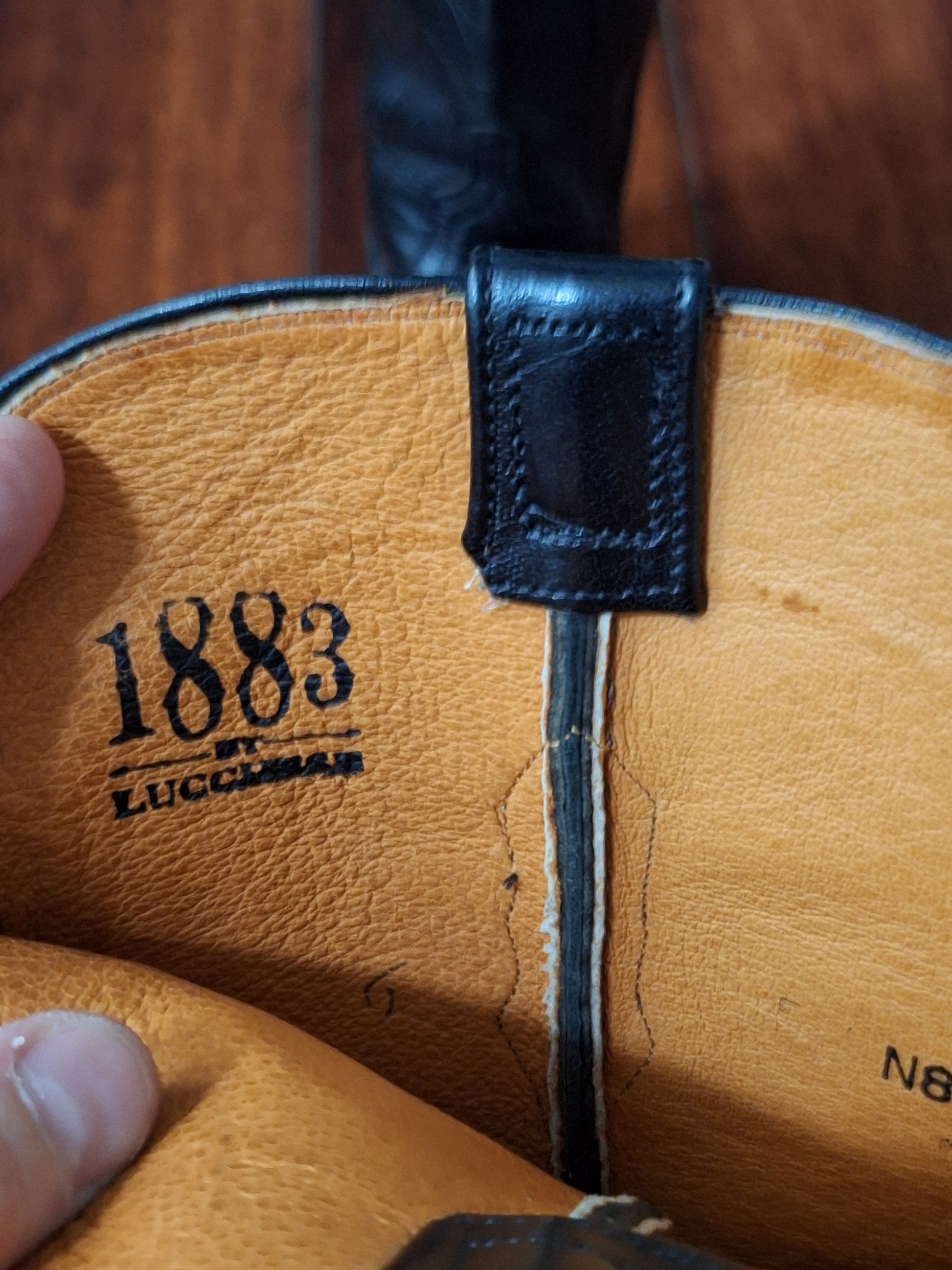 Lucchese 1883 SNIP TOE BLACK Leather Pull On Cowboy Western Boots Size 9.5 B USA, Pre-loved. In good condition overall, please see photos for wear.
