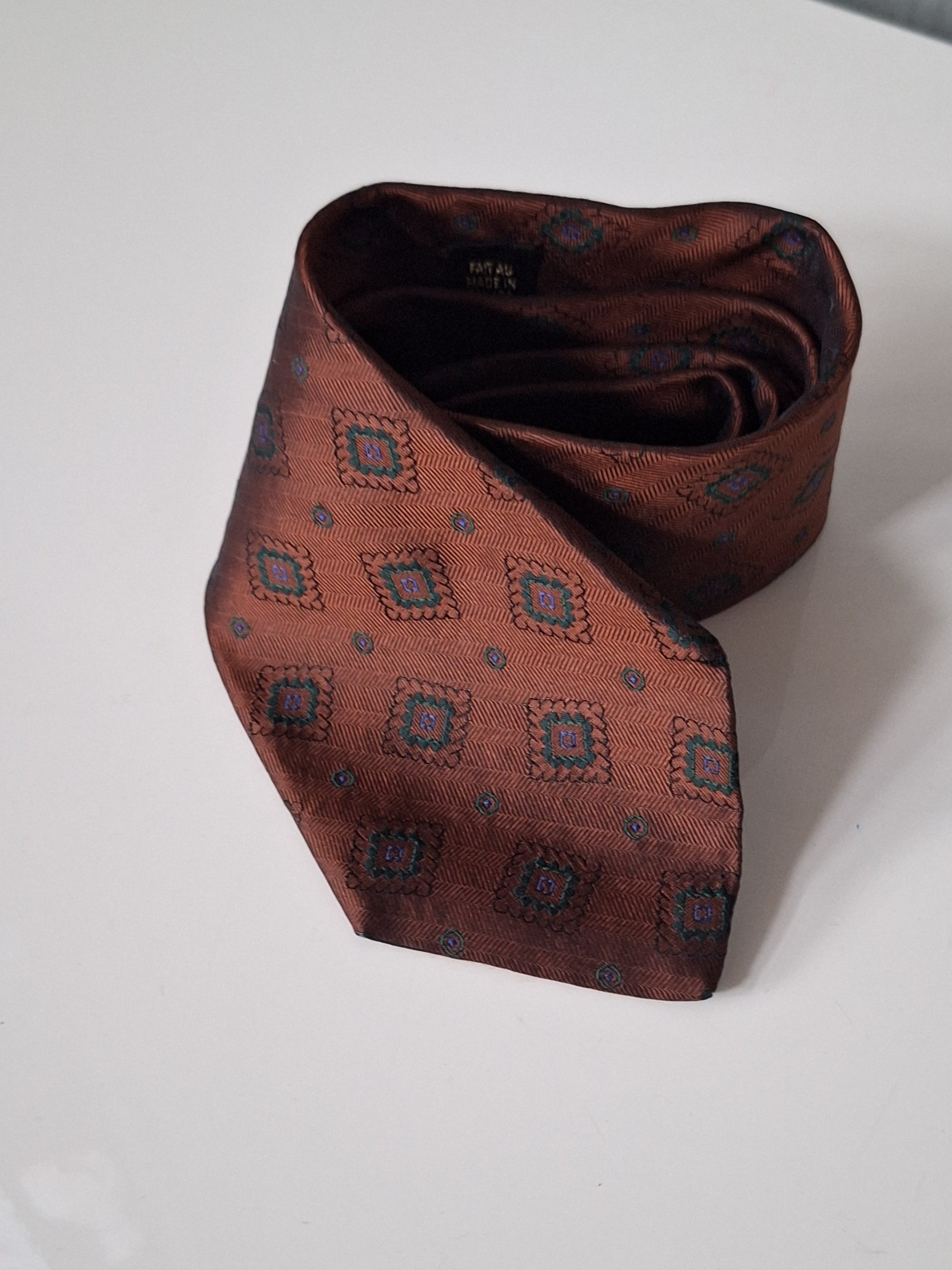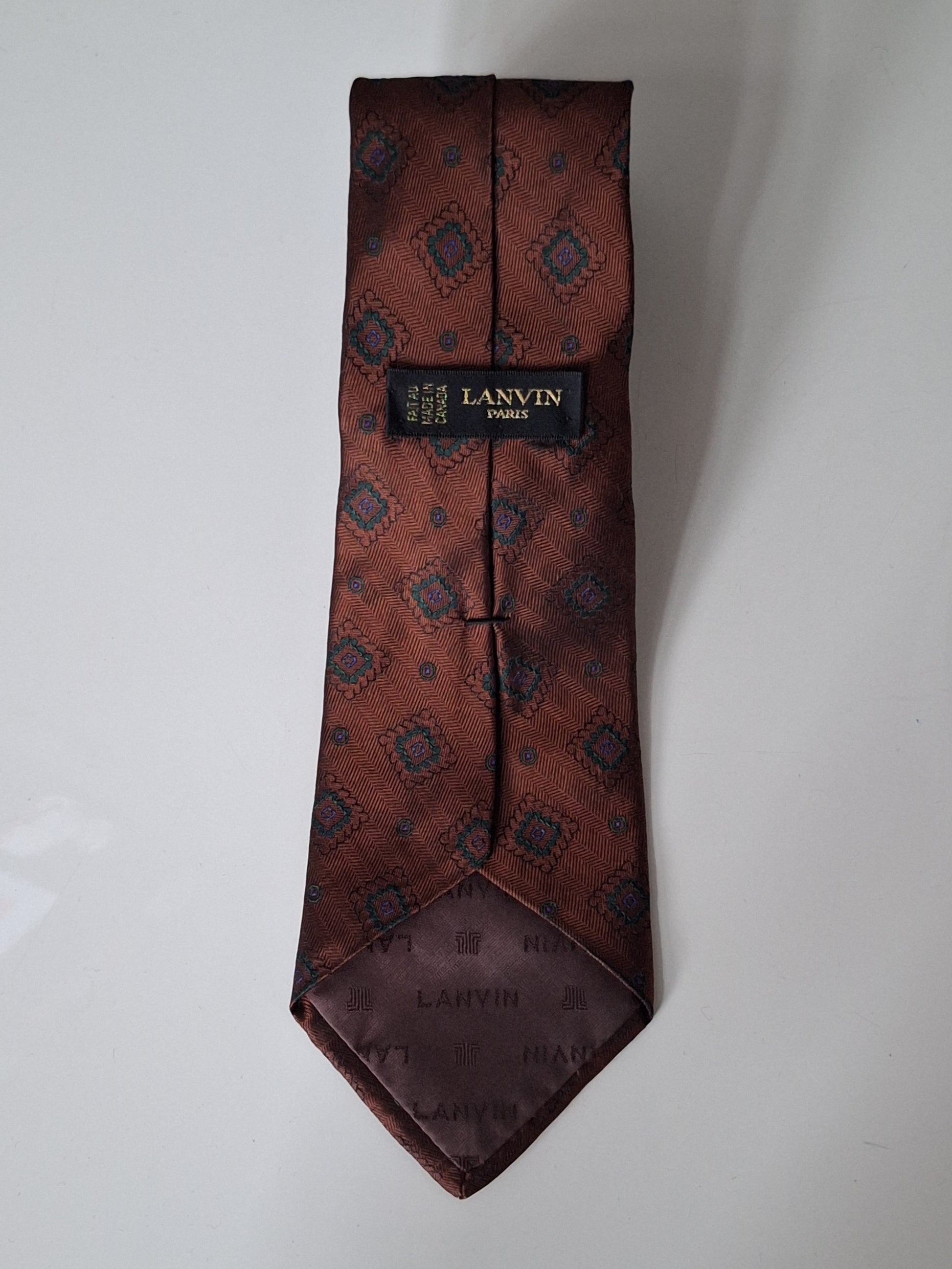 Men's Brown Geometric Lanvin Paris Tie, pre-loved. Please see photos for any wear.