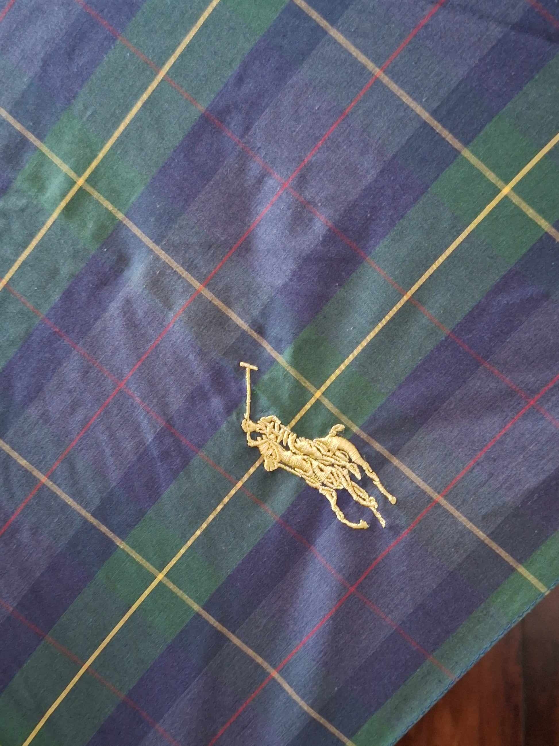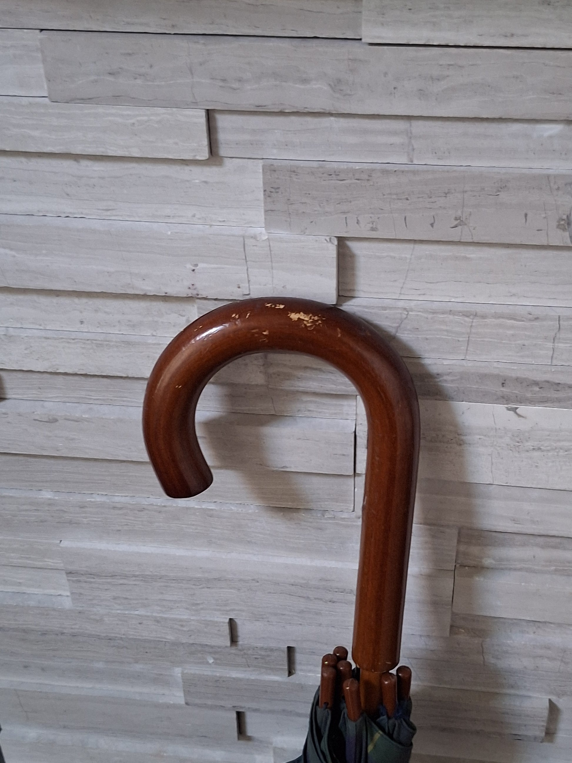 Polo Ralph Lauren 90s Vintage Umbrella with Wood Handle Tartan Green Blue Plaid, pre-loved. Scratches on handle and wood tip. No tares, please see photos for wear.