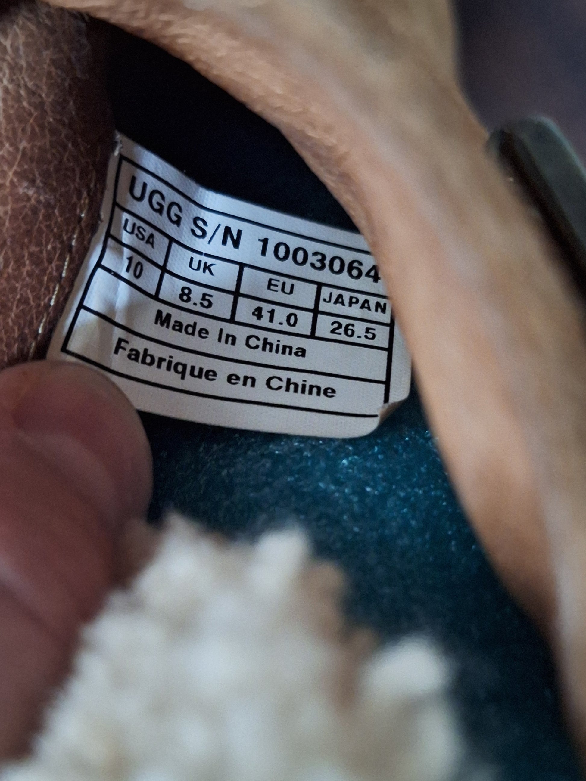 UGG Australia Brown Chestnut Suede Shearling Fur Anais Wedge Bootie US 10 M, pre-loved. Some light scratches on the wood wedge as seen in photosand some rubbing on the inside facing shearling by the top of the boot, but in good condition overall. Please see photos for wear.